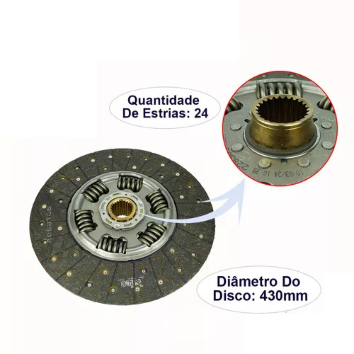 - Diâmetro do disco: 430mm, quantidade de estrias: 24